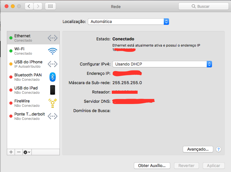 2 – Escolha qual conexão está usando (no meu caso, estou ligado no roteador pelo Wifi E por cabo Ethernet). Neste caso, tanto faz qual placa eu quiser utilizar para “travar” o IP, mas lembre-se que o MAC Address para cada uma dessas placas será diferente, apesar de ambas estarem no mesmo computador.