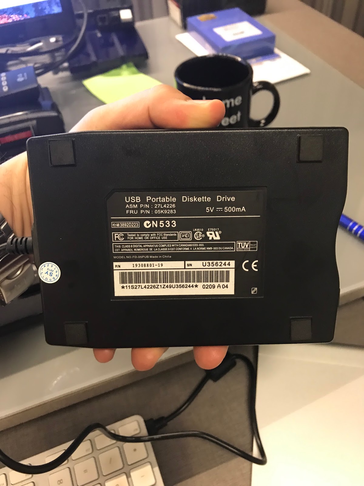 Até tinha pensando em comprar um leitor. Mas onde instalar? Como instalar? Onde achar a bagaça? Foi aí que, fuçando o AliExpress, achei esse produto aqui e resolvi arriscar! Um leitor de disquete 3.5″ 1.44MB HD 80 trilhas para USB. Exatamente o que eu precisava. Custou uns US$10 e, se não me falha a memória, ficou o dobro disso por causa de imposto de importação…