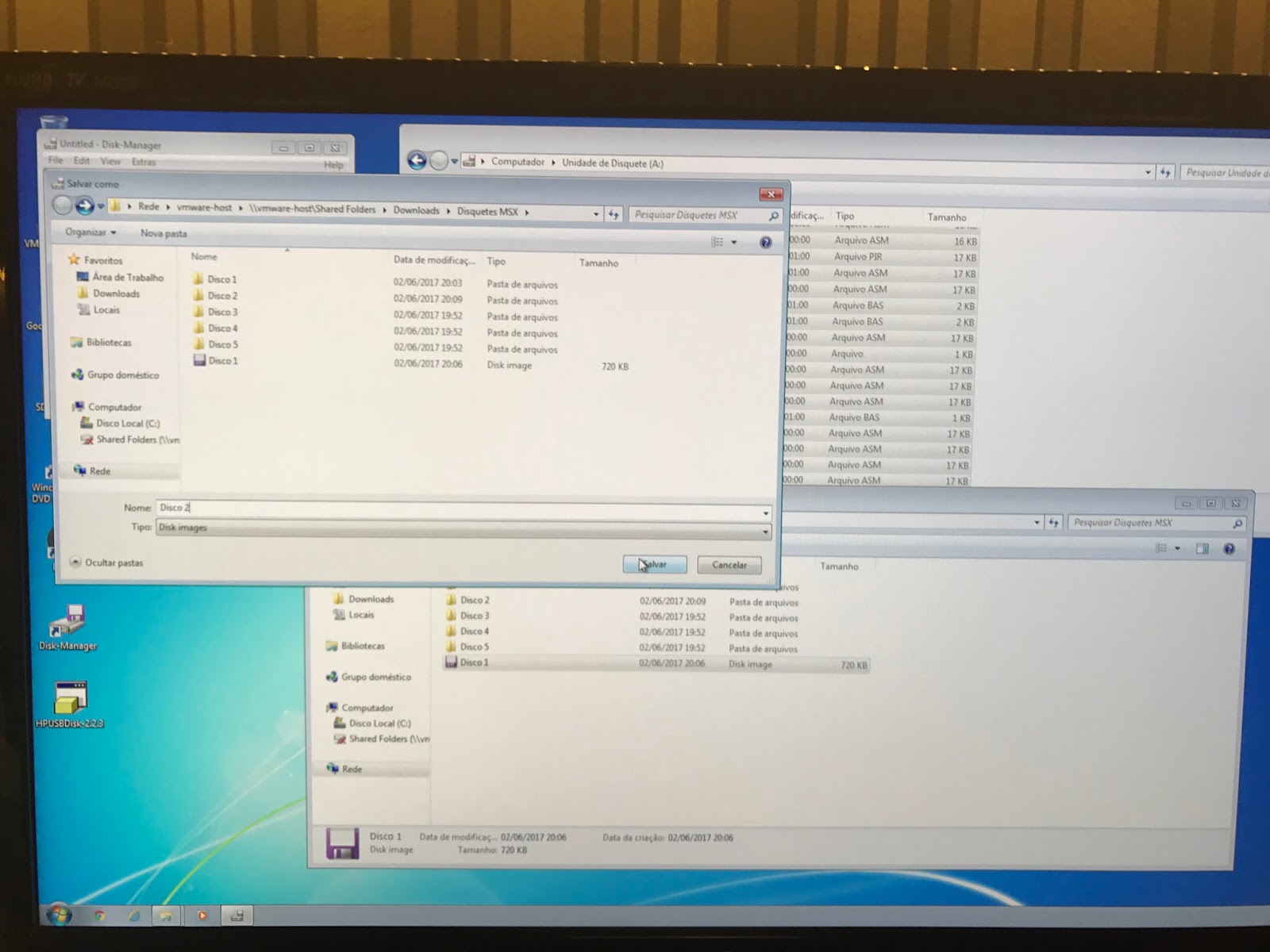 O programa necessário para criar a imagem para o MSX é o Disk-Manager, obtido aqui. O processo é bem fácil e auto-explicativo. Você lê o disco no drive e manda gravar no HD. Ele também faz o contrário, ou seja, lê a imagem .DSK e permite que você acrescente, apague ou copie arquivos de dentro da imagem. Show!