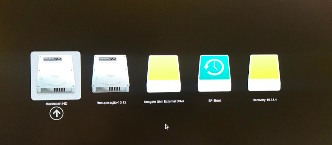 Coloquei meu HD externo de novo, reiniciei com Option apertado e apareceu isso: