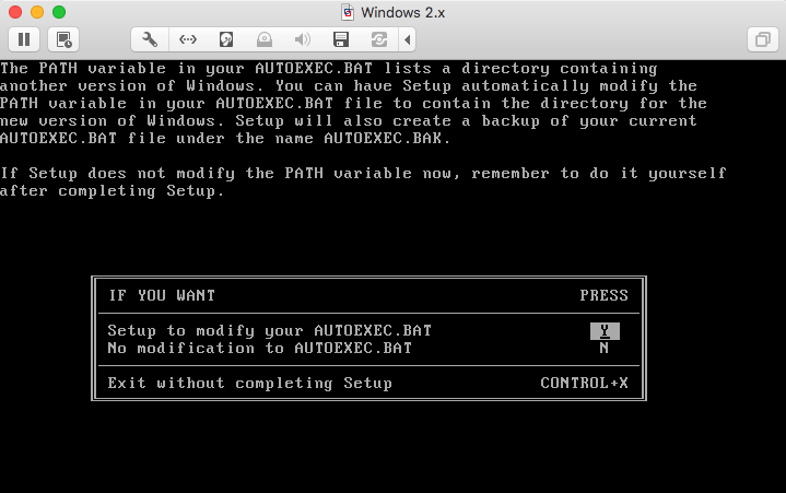 Ele vai perguntar se quer instalar impressora (escolhi não) e ele avisar que tem que fazer uma modificação no AUTOEXEC.BAT. Dê Y e siga em frente.
