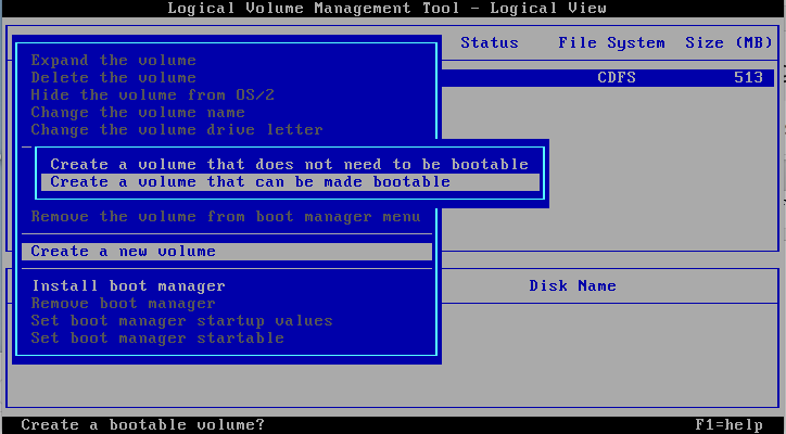 Escolha criar um volume que possa ser “Bootável”.