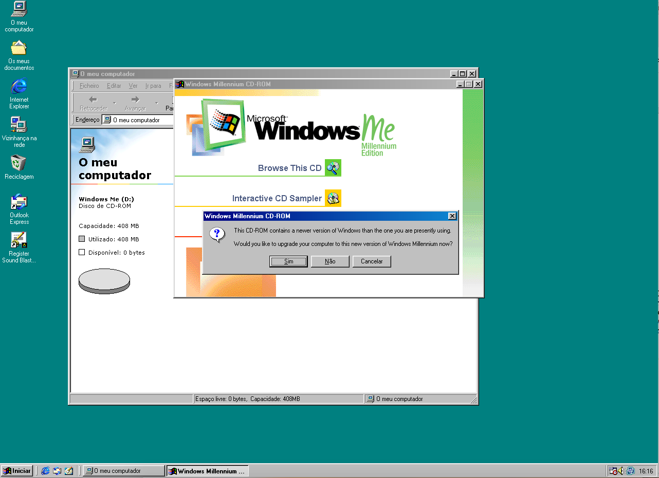 (Windows ME mostrando a que veio 😂😂😂)