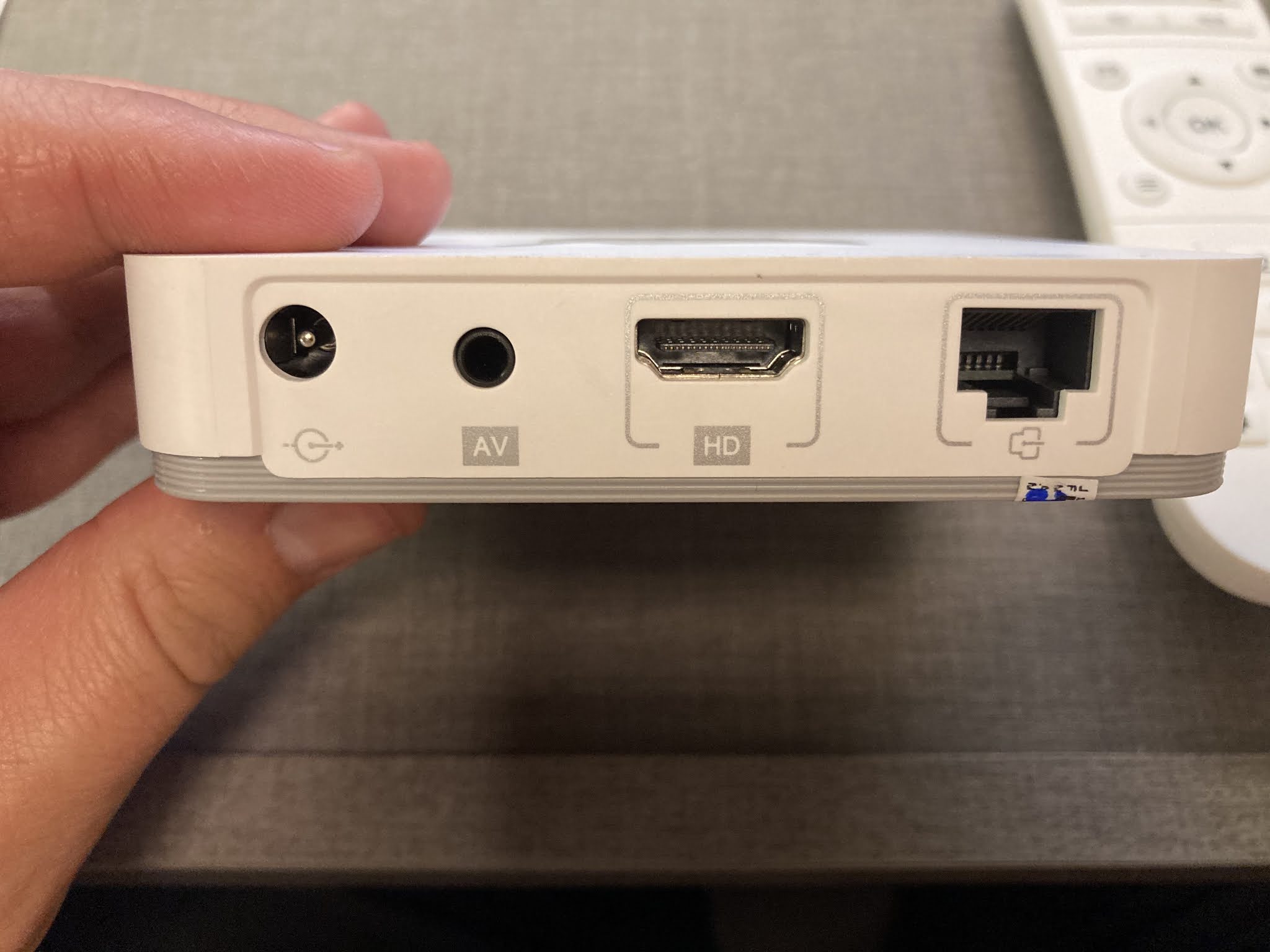 O produto é bem acabado. Vem em uma caixa bem apresentável, tem um controle infravermelho razoável (podia ser bluetooth, mas vá lá), tem entrada para rede (RJ 45), duas portas (uma USB 2.0 e uma 3.0), uma entrada de cartão de memória (?), saída HDMI e AV. Acompanha um cabo HDMI e o carregador com padrão brasileiro do Luladrão.