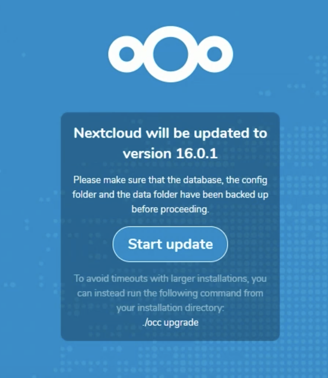 $ php ./occ <span class="hljs-symbol">maintenance:</span>mode --off<span style="background: var(--hljs-bg);font-size: 1em">$ php ./occ upgrade</span>