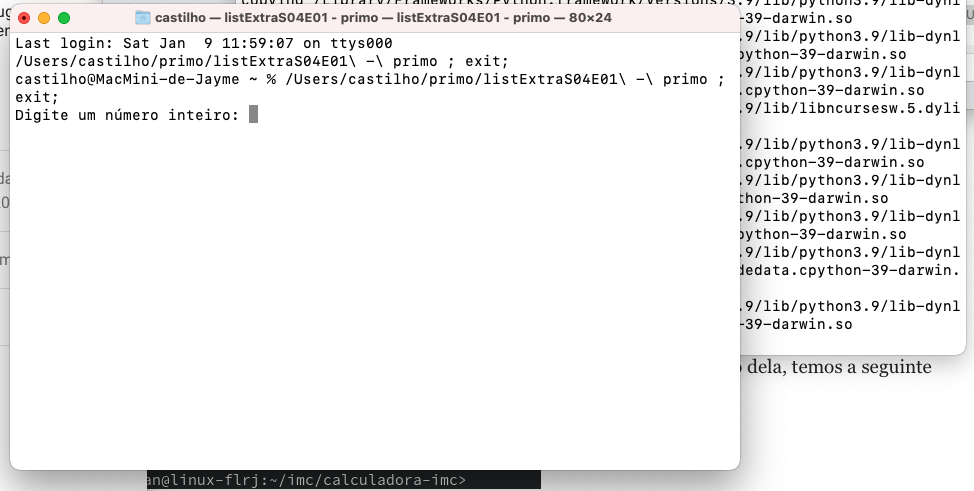 Após dar <enter>, vai rodar o programa e, quando terminar, aparecerá uma pasta com o nome do programa e o executável lá dentro (no caso, listExtraS04E01 – primo). Crie um atalho e coloque-o onde quiser.
