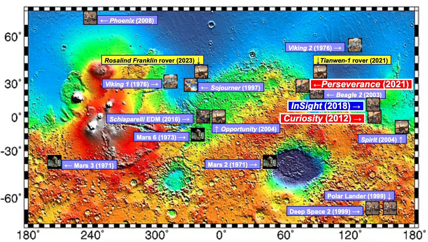 Por último, um mapa que mostra as missões em Marte: