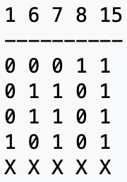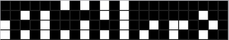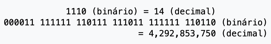 A seguir vem uma seção que contem os números binários que representam os números atômicos dos elementos principais da vida na Terra – Hidrogênio (1), Carbono (6), Nitrogênio (7), Oxigênio (8) e Fósforo (15):