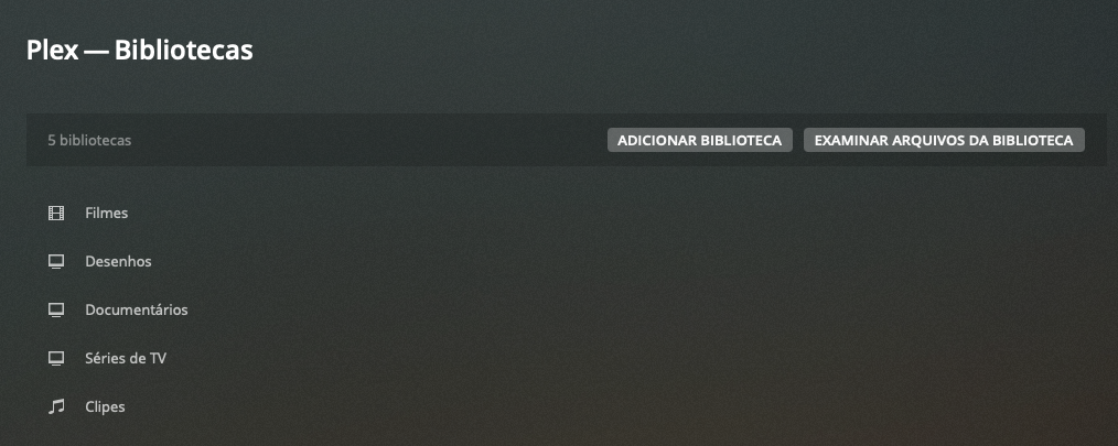 Outro modo é criar um jail para cada coisa. Um jail que vai apontar para a pasta “Filmes”, outro jail que apontará para “Clipes”, outro para “Documentários” e assim por diante. Na hora de criar a biblioteca no Plex, aí você aponta cada coisa para cada jail que criou.