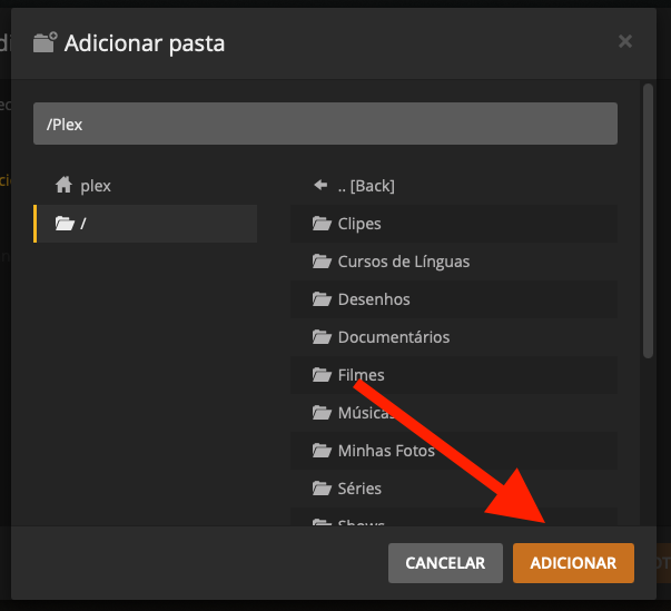 (para para o Plex, clique nessa seta primeiro…)