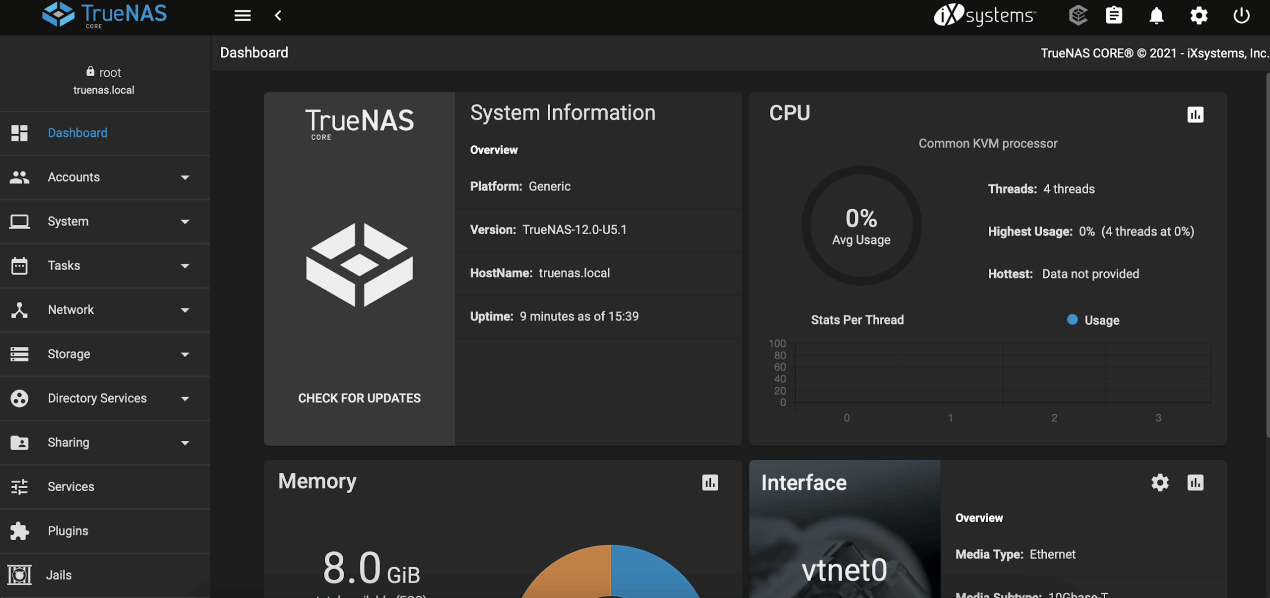 Para acessar a interface web do TrueNAS, é só digitar o endereço 192.168.1.30.