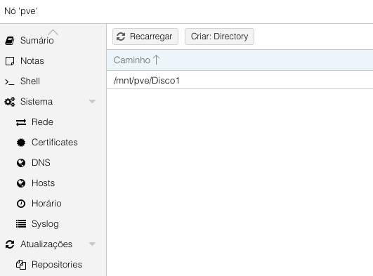 Criei um diretório no Proxmox chamado “Disco1” durante um teste. Quando fui apagar, a desgraça não apagava de jeito nenhum, ficava mostrando que estava montado ainda. Exclui a partição e nada. Só fica assim: