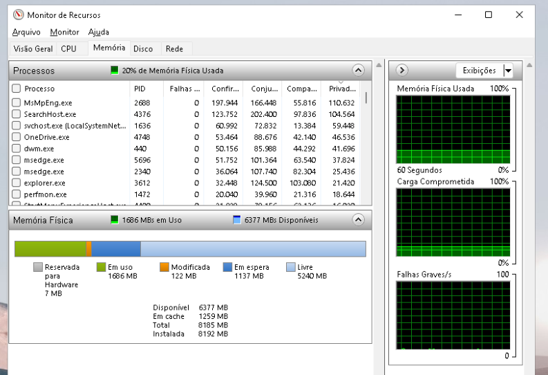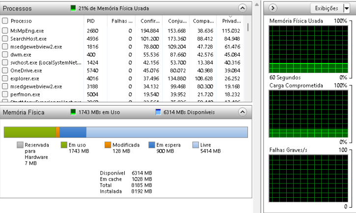 A memória já tem 21% ocupada.