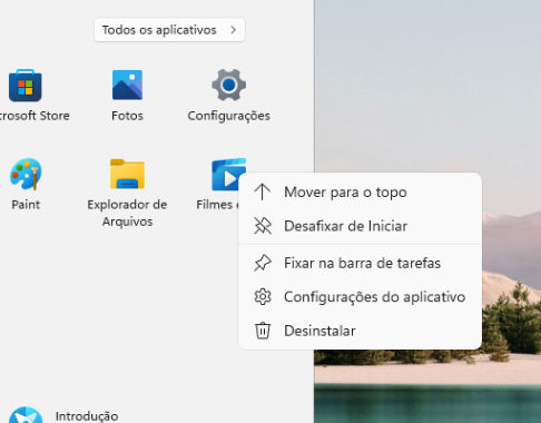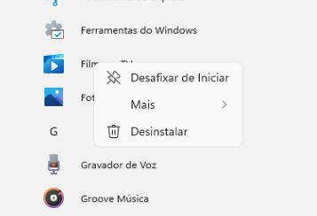Remover pelo Menu Iniciar