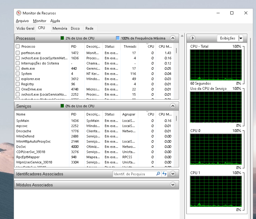 Bom, após remover tudo que eu queria, ficou assim: a CPU está consumindo quase a mesma coisa, um pouco menos apenas. Está rodando entre 3-5% sem fazer nada, só que agora em full-HD e com com o OneDrive funcionando. Às vezes cai até para 2%! Além disso, está bem mais reponsivo que antes.