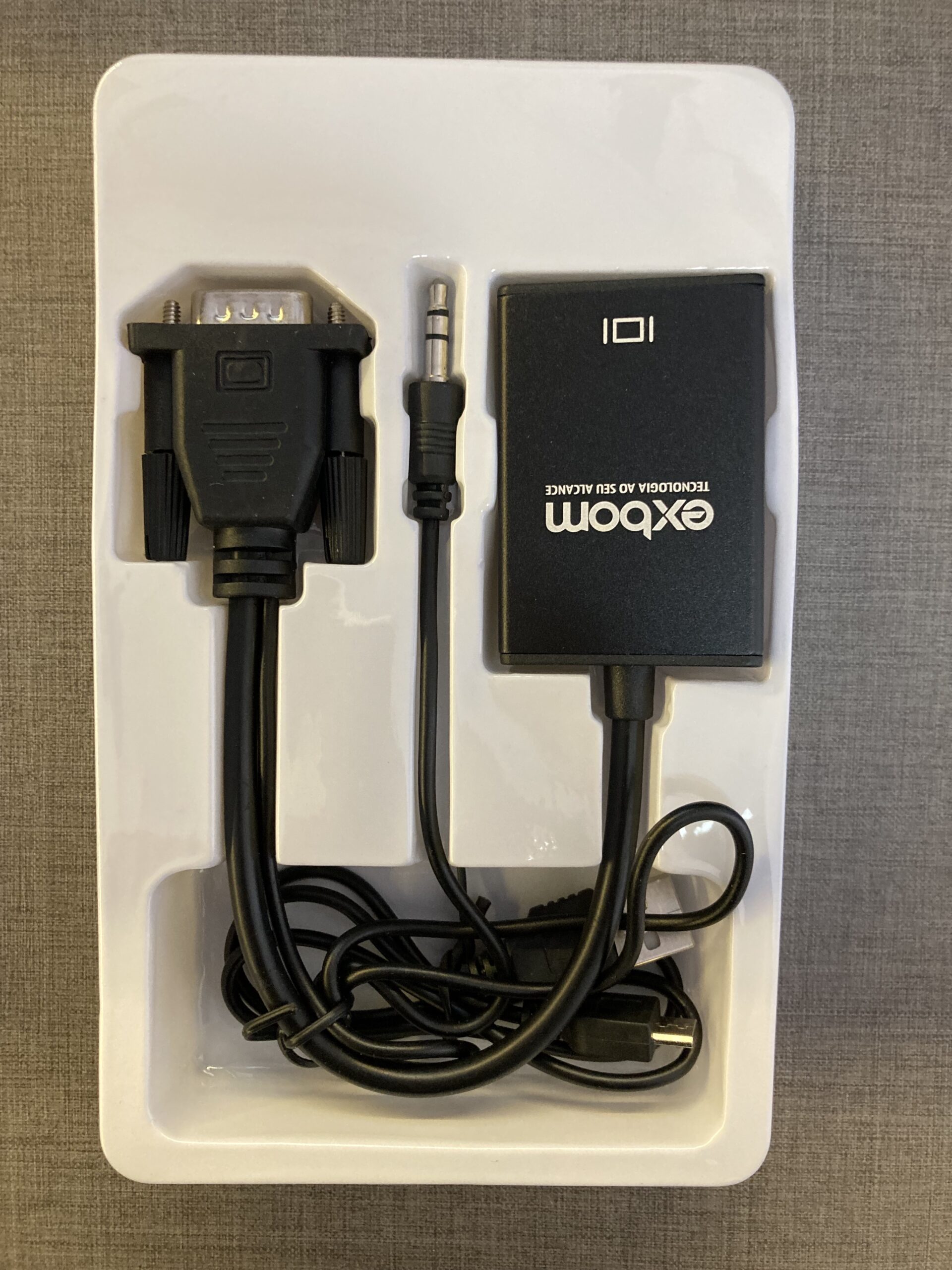 Assim, acabei precisando deste cabo aqui (Cabo Conversor VGA para HDMI com Áudio e Vídeo 1080p Alimentação por USB Exbom CC-VHA30) para ligar o MSX2+ ao LG UltraWide 29WK600.