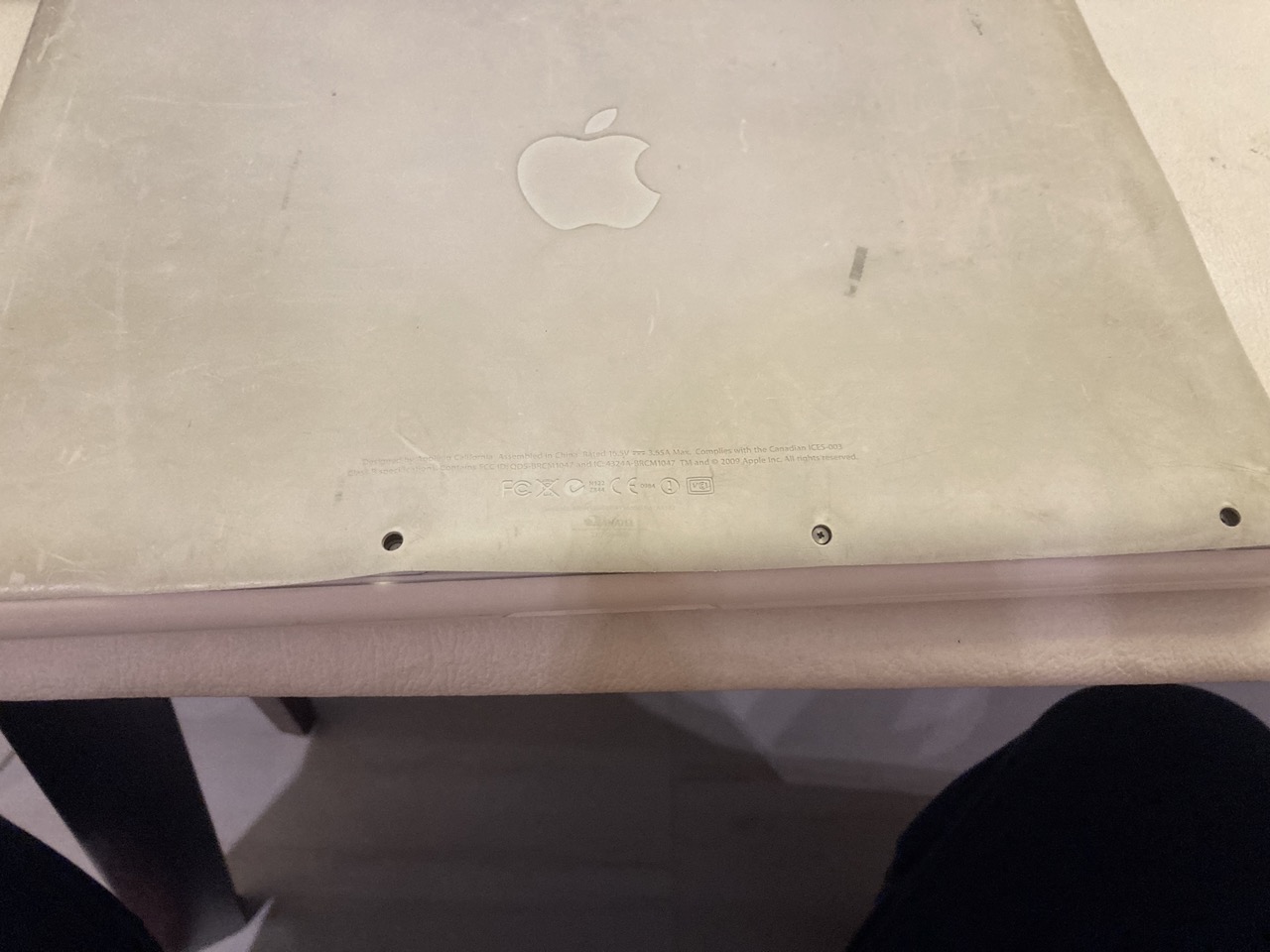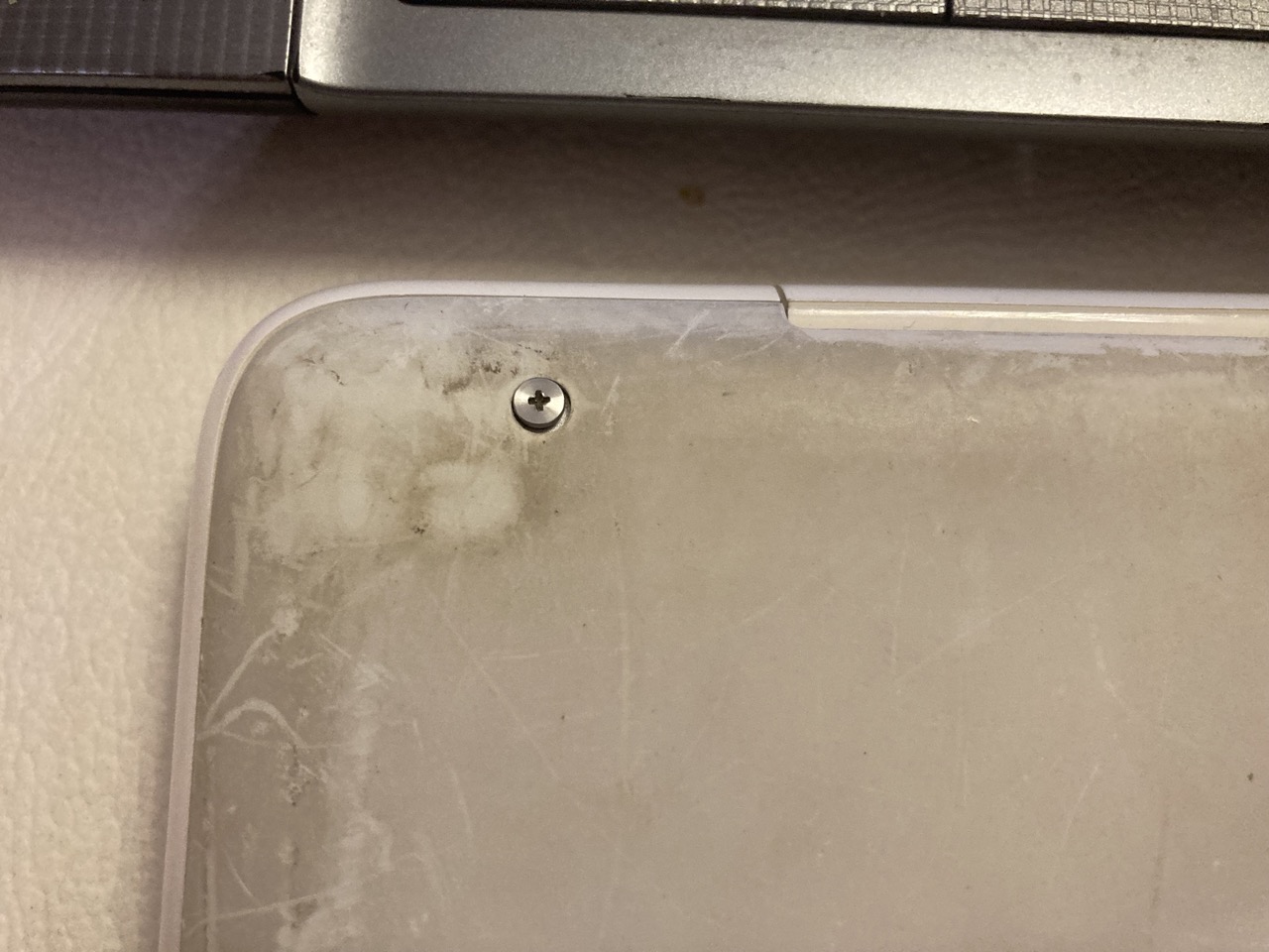 Um problema clássico desse modelo era o fundo emborrachado que se soltava. Na época a Apple trocou gratuitamente esse fundo, mas o meu só foi soltar anos depois. Ficou assim: