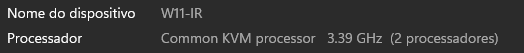 Outra coisa interessante é como cada sistema “detecta” o hardware real que está por trás dele. O Proxmox reconhece o processador, ainda que suas VMs mostrem algo diferente: