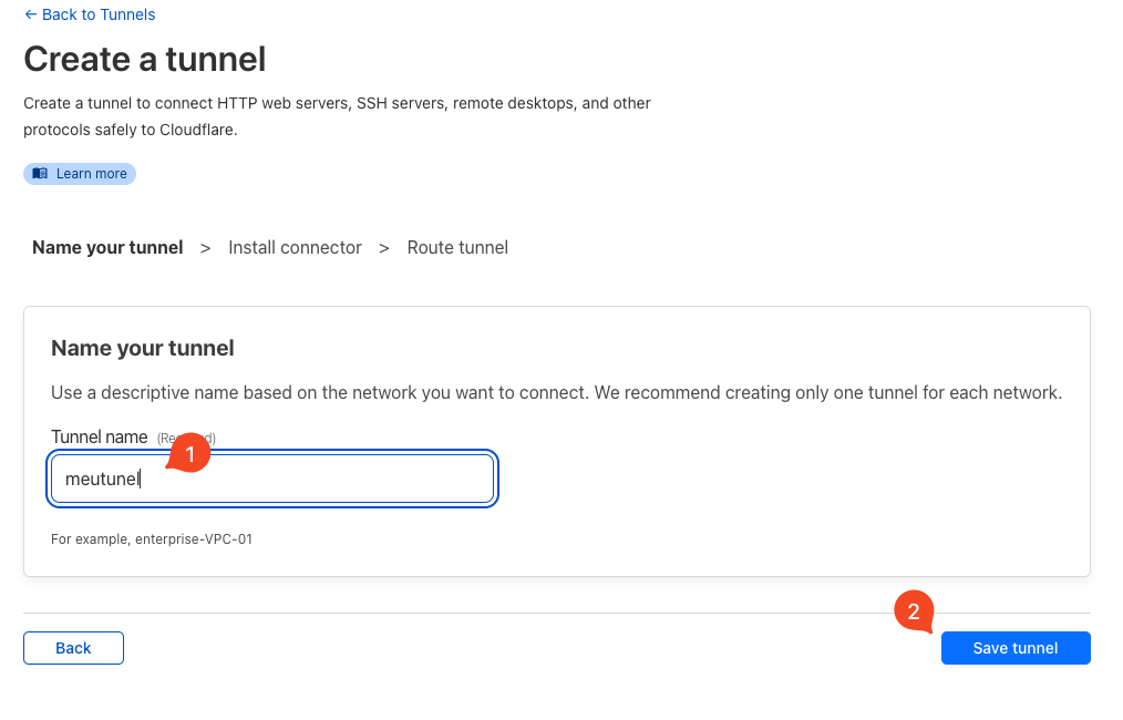 Escolha o nome do seu túnel e clique em “Save tunnel”: