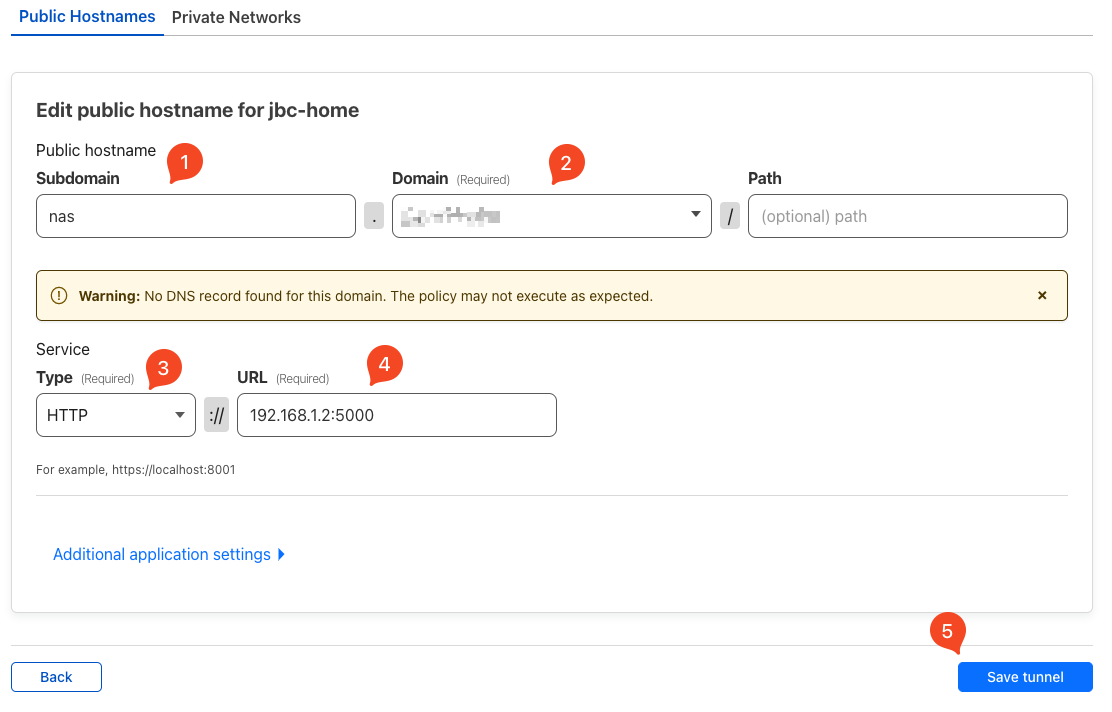 Assim, por exemplo, pretendo usar para acessar meu Synology NAS sem precisar expô-lo através do Quickconnect ou abrindo o firewall para tanto. Posso simplicar e criar um ‘synology.meudominio.com.br’ para o NAS e passar para a Cloudflare qual o endereço IP privado e a porta. O Synology usa uma interface HTTP através da porta 5000, mas quando acessamos através desse túnel, essa interface se torna uma conexão HTTPS pela porta 443.
