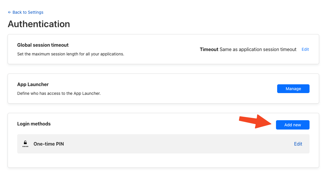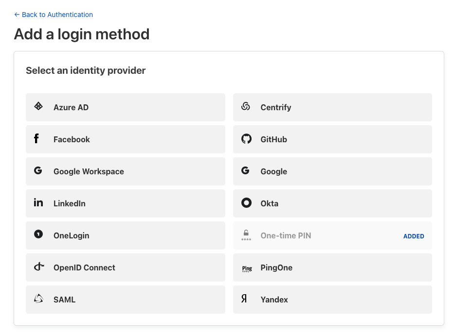 Perceba que apenas um modo de autenticação está ativado. Clique em “Add New” para escolher outros métodos: