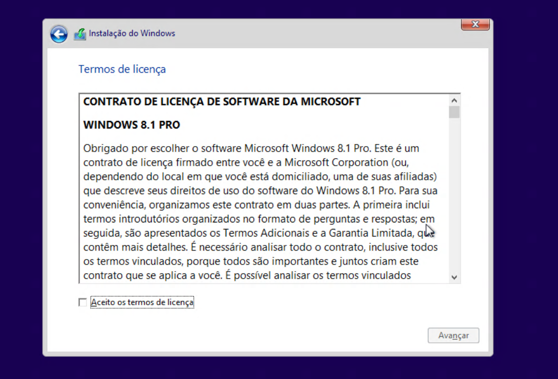 Vamos à instalação. Como nunca instalei o Windows 8 nem o 8.1 (saí do Windows 7 para o Mac OSX e só voltei ao Windows em máquinas virtuais no Windows 10), apenas imagino que o processo deve ser fácil como no Windows 7. A versão que instalaremos será a 8.1 Pro em português e, assim como com Windows 7, não está disponível no WinWorld.