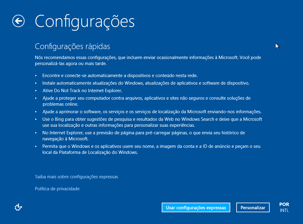 Mais uma inovação! Essa tela permite algumas configurações automáticas. Vou com elas!