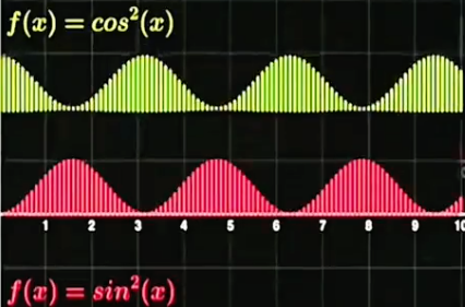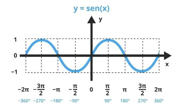 Quando rodamos todo o círculo trigonométrico (sentido anti-horário, de 0 graus até 360 graus), vemos que tanto o seno quanto o cosseno fazem movimentos periódicos, conforme as figuras abaixo. Só um detalhe: chamamos o movimento periódico do seno de senoide ou onda sinusoidal e o movimento periódico do cosseno de cossenoide ou onda cossenoidal.