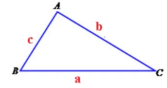 Por essa lei, dado o triângulo abaixo com lados a, b e c e ângulos α, β e γ: