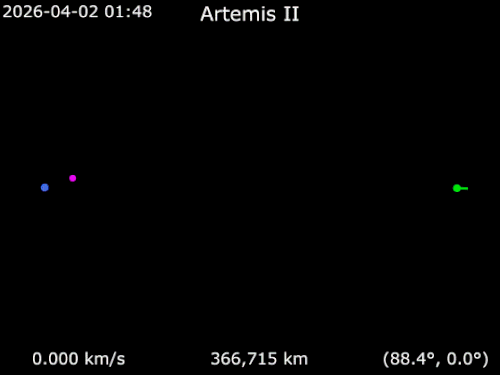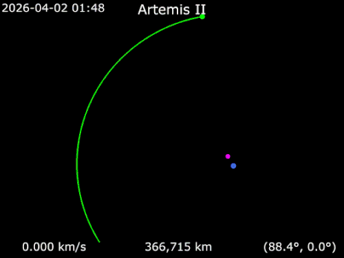 A imagem acima é enganosa. Tudo está em movimento em relação a tudo. No caso, a Lua está em movento em relação à Terra e a Artemis 2 está em movimento em relação à Lua e à Terra. Ou seja, a imagem abaixo é mais realista, pois mostra a mecânica orbital muito mais real (tendo apenas a Terra como referencial).